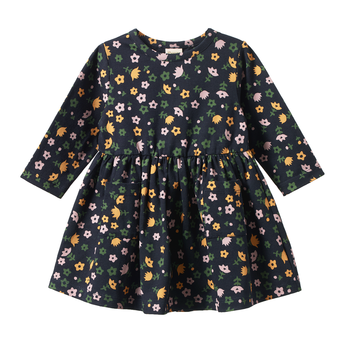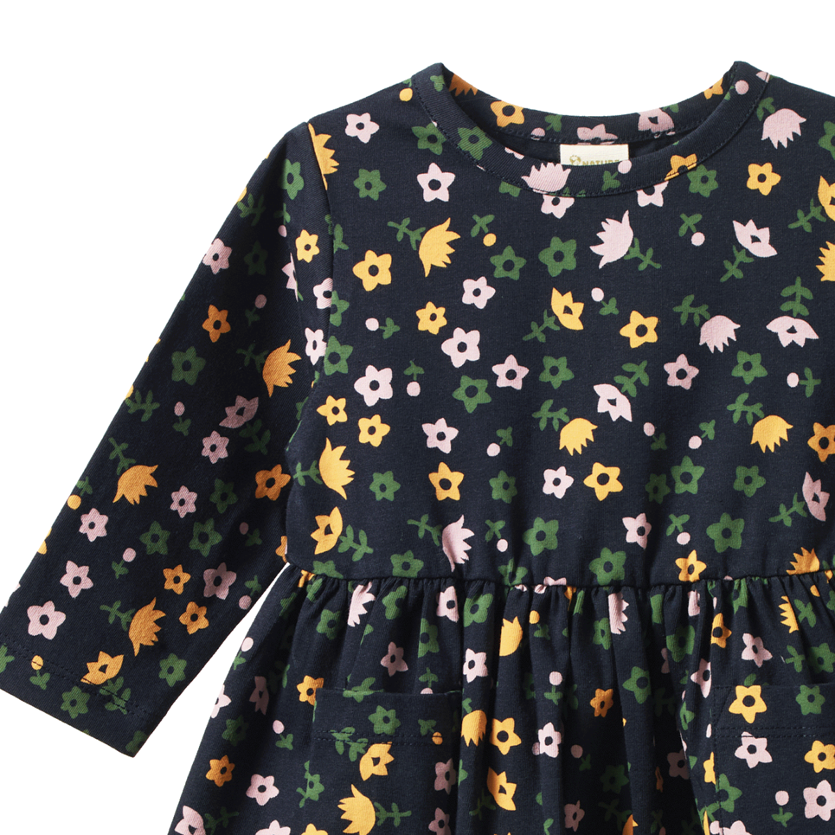 NATURE BABY LONG SLEEVE TWIRL DRESS NAVY POLLYANNA PRINT