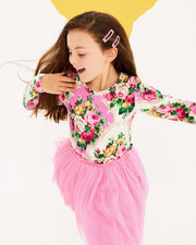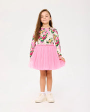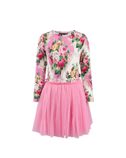 Calling all cool kids, our Rosette Circus Dress is made for those who love to dance, twirl, and stand out with style! This adorable dress features a gathered tulle skirt, long sleeves, elasticated waistline, and round neckline. The botanical digital print inspires a touch of nostalgic but playful look. Your child will be comfortable all day long in this dress, making it perfect for both playtime and special occasions.