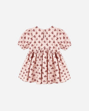 Our Rose Dress, crafted in delicate Swiss dot fabric, features gathered puff sleeves and a scalloped waist seam, adding a touch of Western flair to a flattering silhouette.