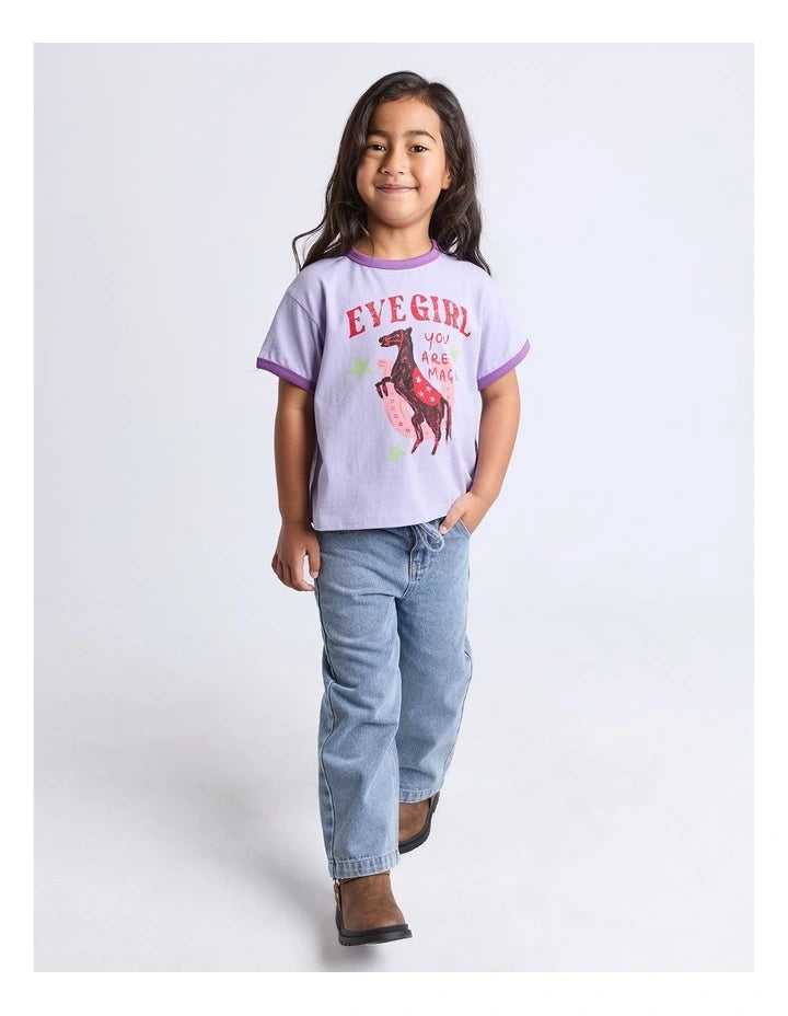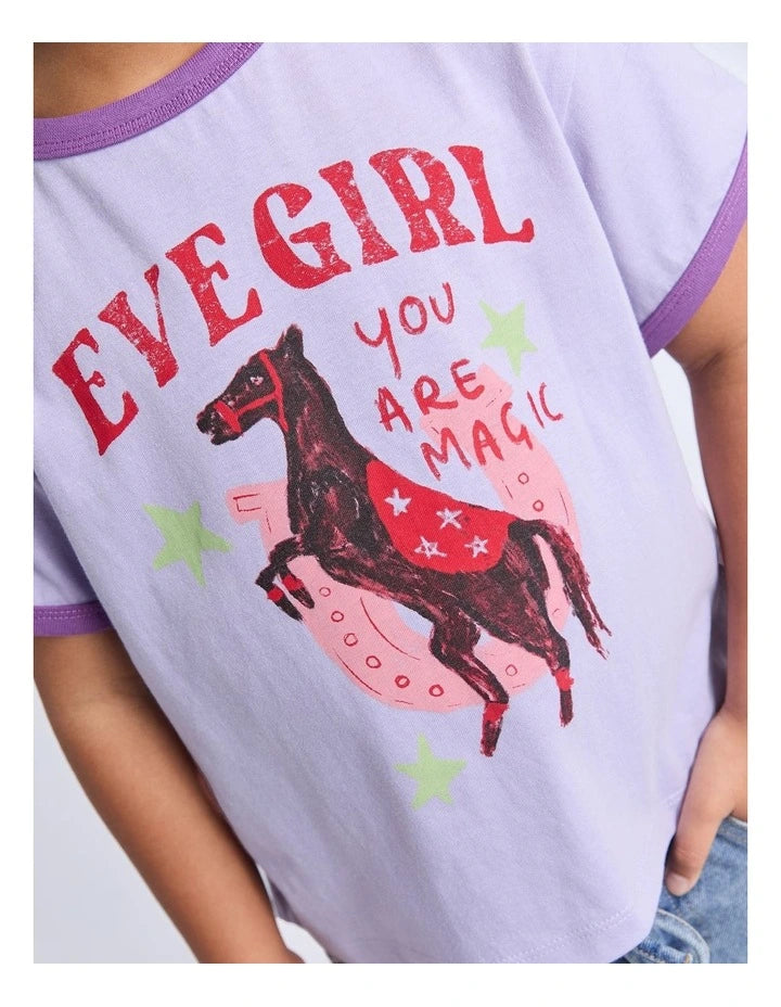 The Magic Tee by Eve Girl is the perfect tee for any wardrobe. This style features a large hand-drawn chest artwork, soft cotton fabrication and contrast rib bind around the neck and sleeve openings. Embracing the fun vibes, this boxy fit tee pairs back with denim for an effortless, everyday look.