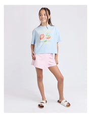 The Palermo Tee by Eve Girl is the essential summer tee. This style combines a bright, fruity chest print on a boxy tee shape, and is made from a soft cotton jersey fabrication. Complete with a rib neckband, twin needle stitching and drop shoulder detail, perfect for everyday wear.