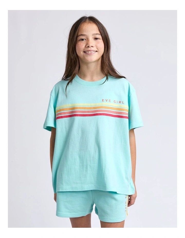 The Retro Tee by Eve Girl is the perfect summer tee. Crafted from a soft cotton jersey fabrication, this style features contrast taping and embroidery along the chest on an oversized tee shape. Available in 3 colourways, this tee is perfect for pairing back with the matching short for a sporty everyday look.