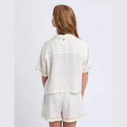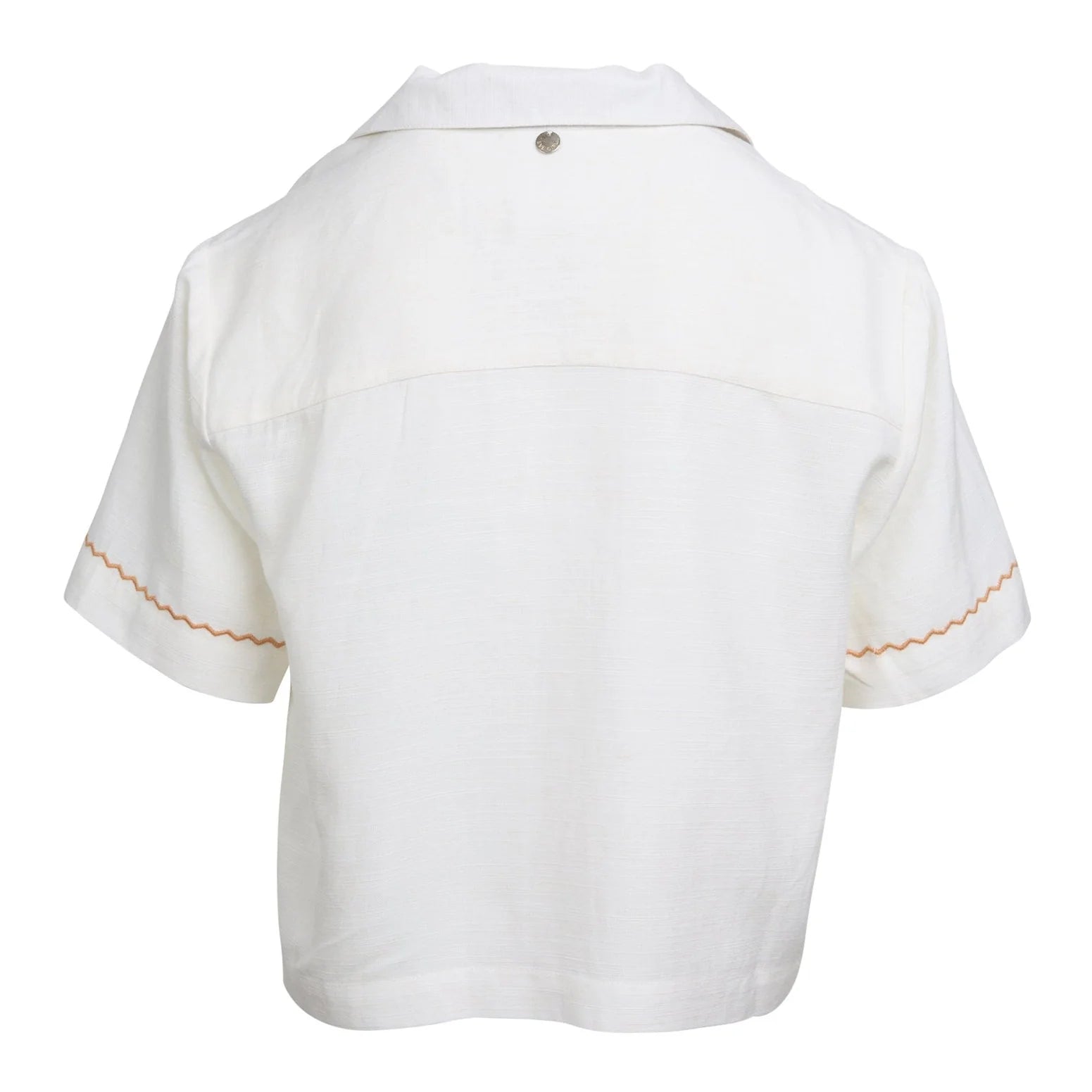 Embrace the tropical vacay vibes with the Sunrays Shirt by Eve Girl. Crafted from a breezy viscose linen blend woven fabric, this shirt features placement embroidery, pearlescent buttons, resort collar and single needle stitching. Can be paired back with the matching short or denim for the perfect summer look.
