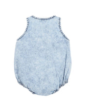 Cool, comfy and made for little adventurers-this acid wash denim romper brings easygoing style to everyday play. With a vintage-washed finish, chest pocket detail and an embroidered fox for a playful twist, it's an all-in-one summer staple that's as durable as it is adorable.