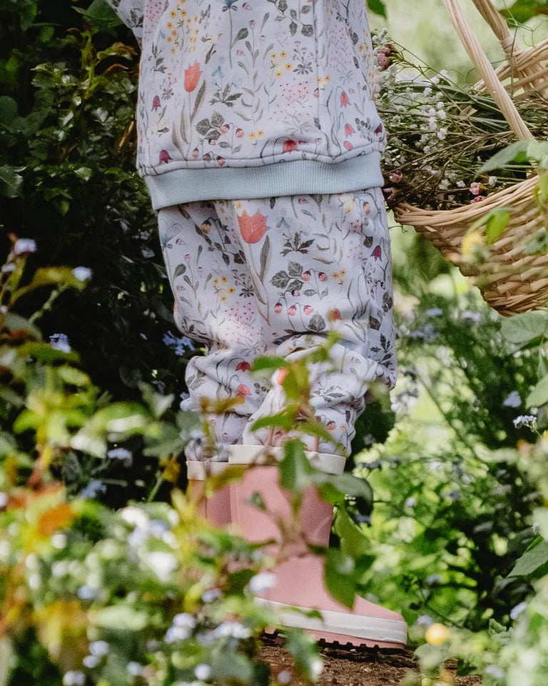These warm and comfy Botanical floral print cotton loop back terry track pants feature a contrast ribbed elastic waistband with tie for ease of dressing and comfort, side front mock pockets and contrast ribbed cuffs. Match it back with the Botanica print Sweatshirt for a complete outfit making it the perfect basic for any Winter wardrobe.