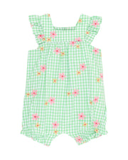 FOX & FINCH GROW WILD EMBROIDERED CHECK ROMPER