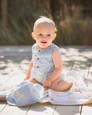 Dreaming of beach days and salty breezes? This summer-ready romper captures the charm of coastal adventures with its all-over surf print and breezy linen blend. A comfy shape, classic button details and roomy pockets make it a go-to for laidback holiday style. Match it back with the Linework sunhat for the full seaside look.