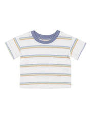 A playful pop of colour for everyday exploring, this cheerful striped tee is made for young wild things on the move. With its soft cotton feel, contrast blue neckband and fun multicolour stripes, it's a go-to piece for backyard adventures, beach days or birthday parties alike. Style it with the Acid Wash or Tan shorts and let the good times roll!