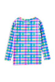 | Milky Clothing Picnic Check Rash Vest. This rash vest is a must-have for summer adventures. Featuring a fun multi coloured check print and UPF 50+ fabric, it’s the perfect blend of style and function for days spent poolside or at the beach. Easy to mix and match, pair it with our Picnic Check Swim Hat or Bikini for a coordinated and sun-smart look. |