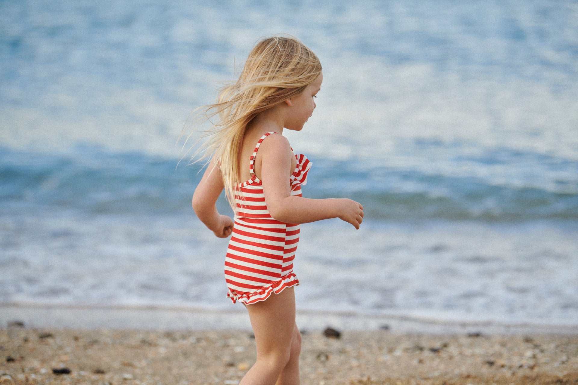 NATURE BABY FRILL SWIMSUIT RED SEA STRIPE
