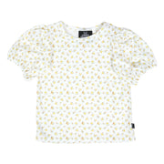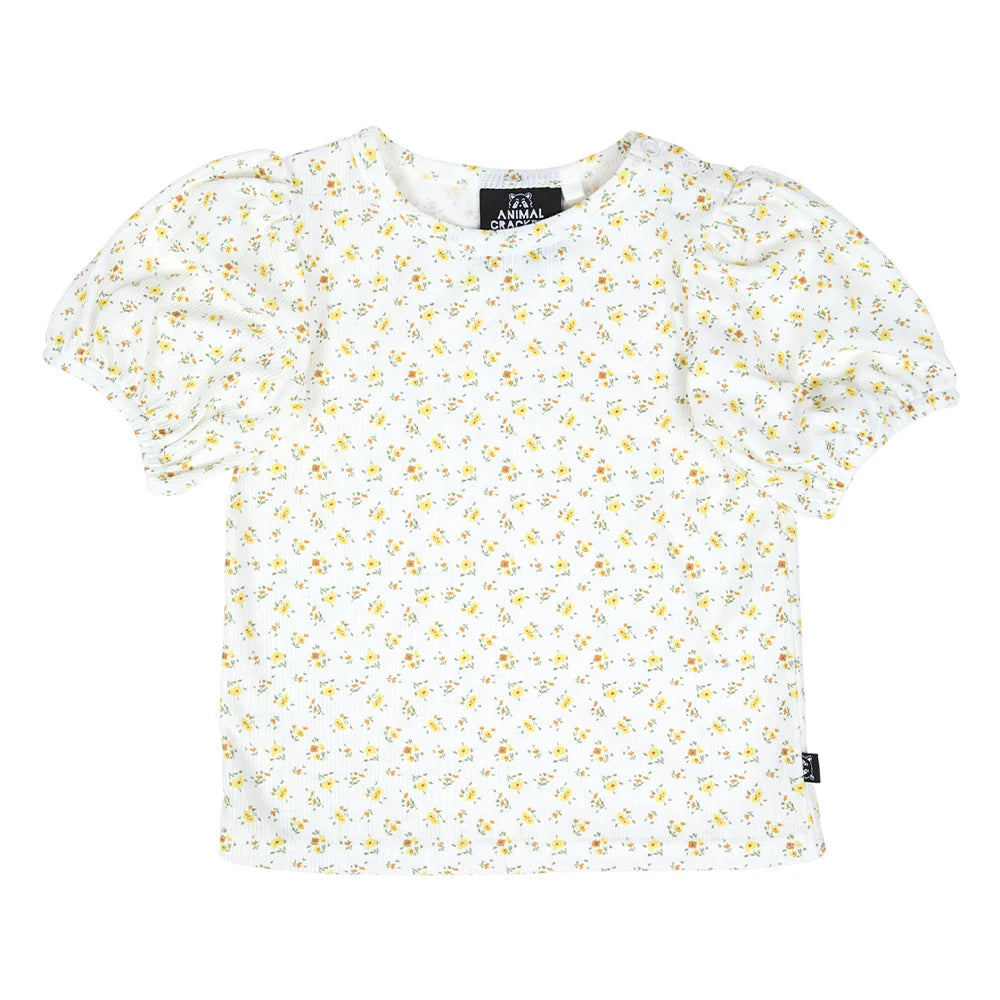 The Blooms Top (Animal Crackers) is a super cute update on a rib tee. Made from a super stretchy rib, it features an all over floral yardage print, puff sleeves with elastic cuffs and a round neck finished with snap closure on side neck for easy wear. The perfect top to team back with any short or skirt this summer.