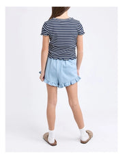 The Issy Rib Tee by Eve Girl is a summer wardrobe essential. Made from a soft, stretchy rib fabrication, this tee features an all-over stripe design and chest embroidery detail. Complete with a self fabric neck band and babylock detail on the hem and sleeve openings.