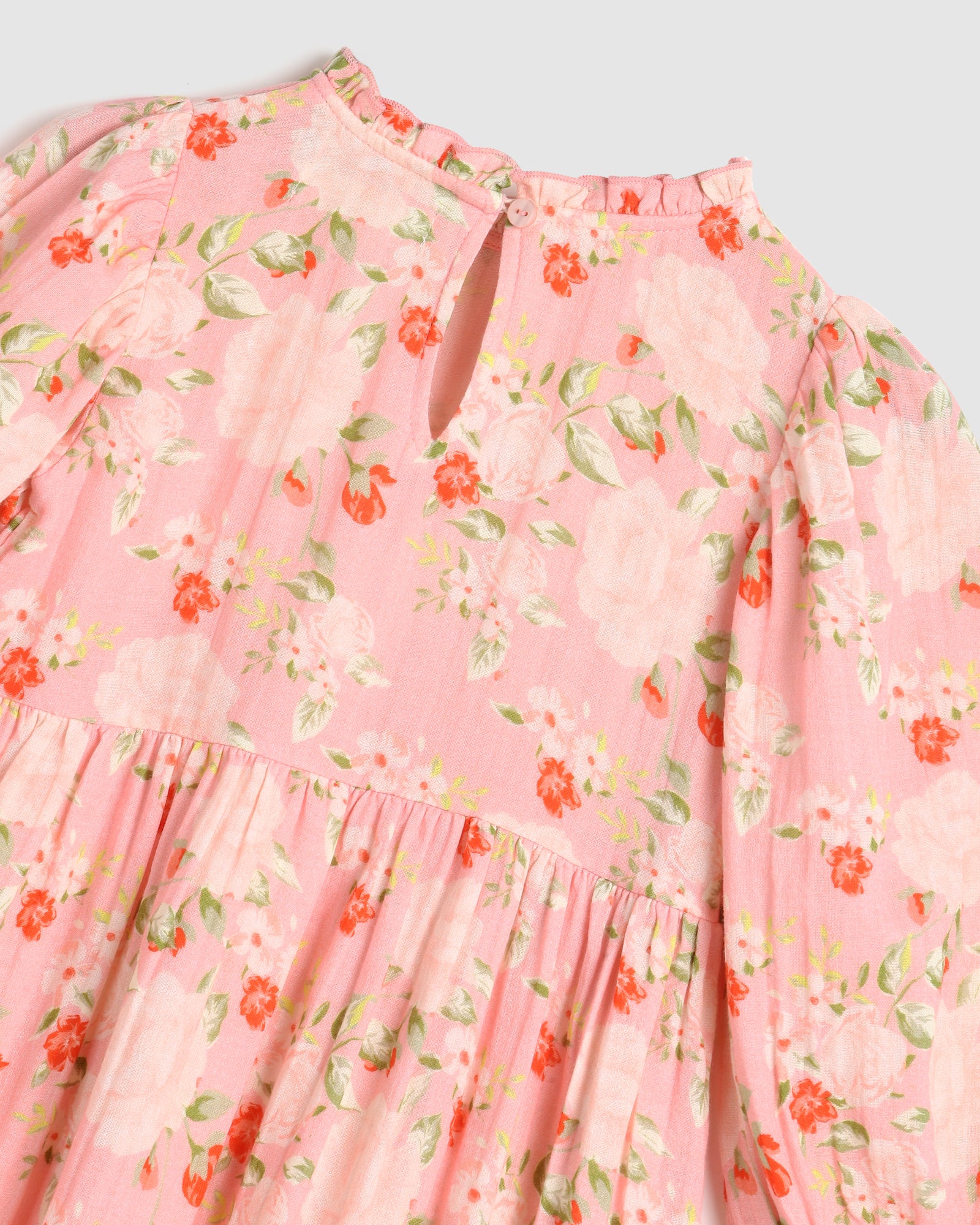 Sweet and simple with a vintage touch, the Sissy Dress in Fabulous Blooms Pink features puffed sleeves with a gathered elastic hem and a lightly gathered skirt. A soft frill trim runs delicately along the collar, creating an understated feminine look. It's the perfect everyday dress with a hint of special. - Length 60 cm ( Size 6 ) - Made from soft cotton gauze Size & Fit: 60cm Care: Cold machine wash. Do not tumble dry. Cool Iron