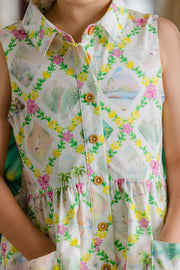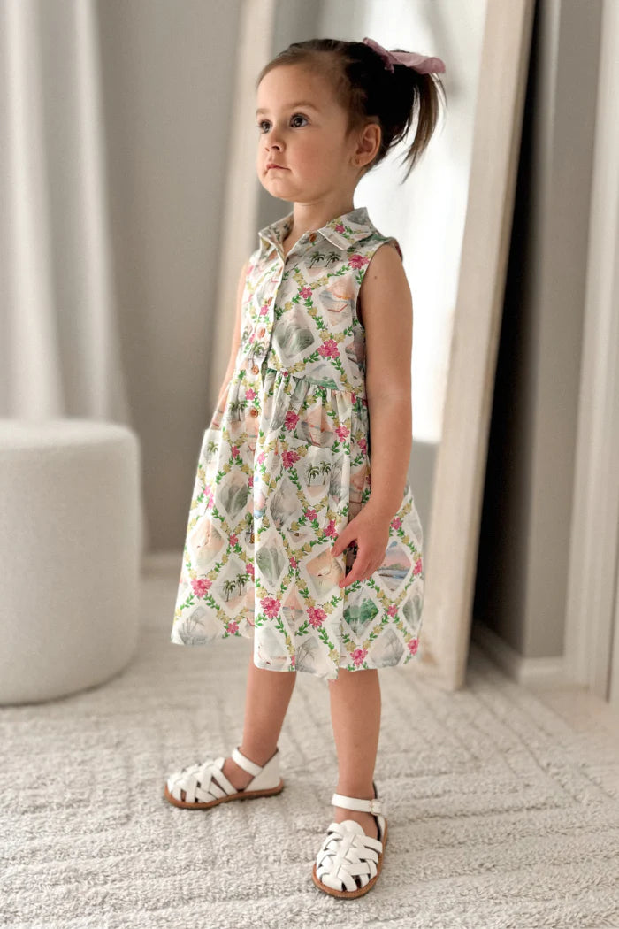 Milky Clothing Aloha Dress is the perfect mix of style and comfort for summer days. Featuring a vibrant tropical floral print, this classic sleeveless dress is designed to keep your little one cool, comfy, and looking oh-so-sweet. Whether it's a party, a picnic, or a day out and about, this dress is made to be worn loved and passed down. For a coordinated sibling moment, check out our matching baby Aloha Playsuit in the same print.