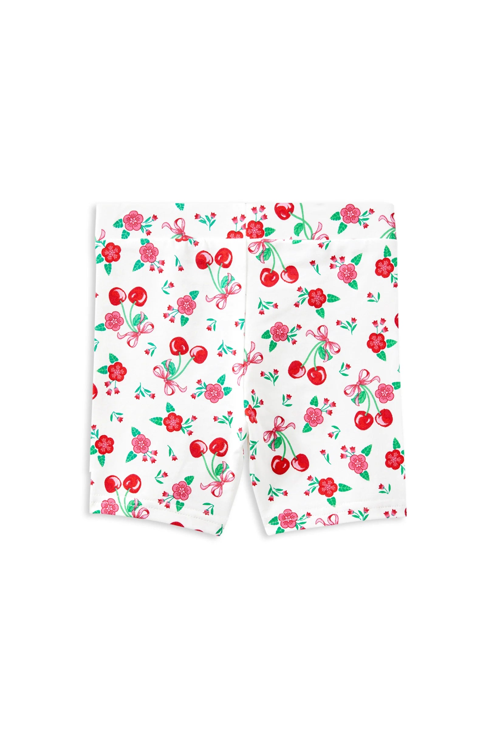 Milky Clothing Sweet Cherry Bike Shorts are a seamless blend of style and comfort, perfect for your little ones summer wardrobe. Crafted with practicality in mind, these shorts feature a crisp white base with an all-over floral print that effortlessly pairs with a simple tee on warmer days. Embracing the trendy bike short style, they provide a cute outfit option while remaining suitable for all-day activities like running, jumping, and climbing.