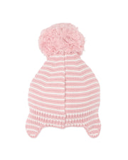 Designed to keep little heads warm and cosy on cooler days, this sweet knitted beanie blends comfort with charming detail. Crafted from soft organic cotton, it features a classic striped knit with snug ear flaps for extra warmth and coverage. Finished with a playful contrast pom pom on top, it’s a winter essential that feels as lovely as it looks—perfect for everyday outings, pram walks and chilly adventures.