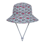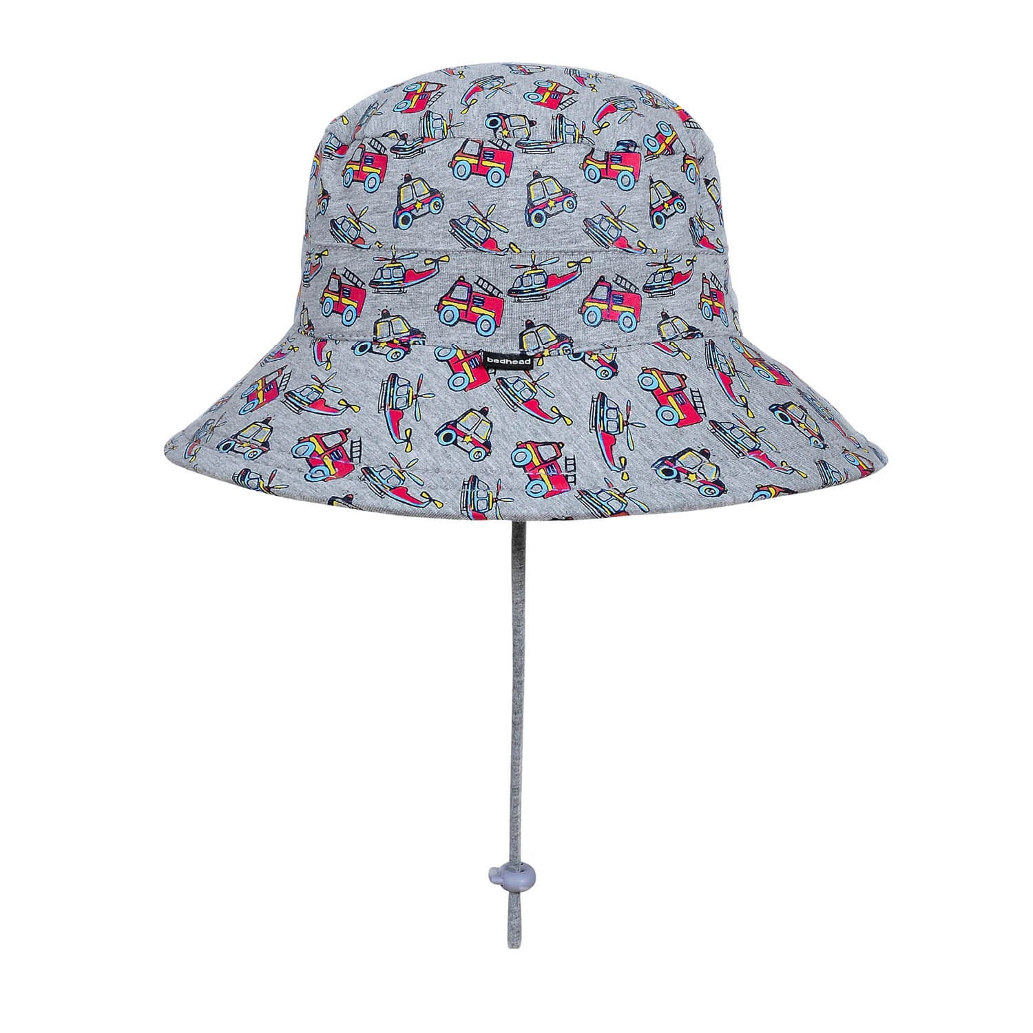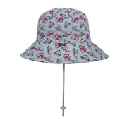 Whether they're zooming around the backyard or rushing to save the day at the park, the Bedhead Classic Bucket Hat in EMERGENCY is the perfect sidekick. Set on a soft grey marle base, this bold print features red fire trucks, white ambulances, and blue police cars—bringing high-energy play to every outfit.
