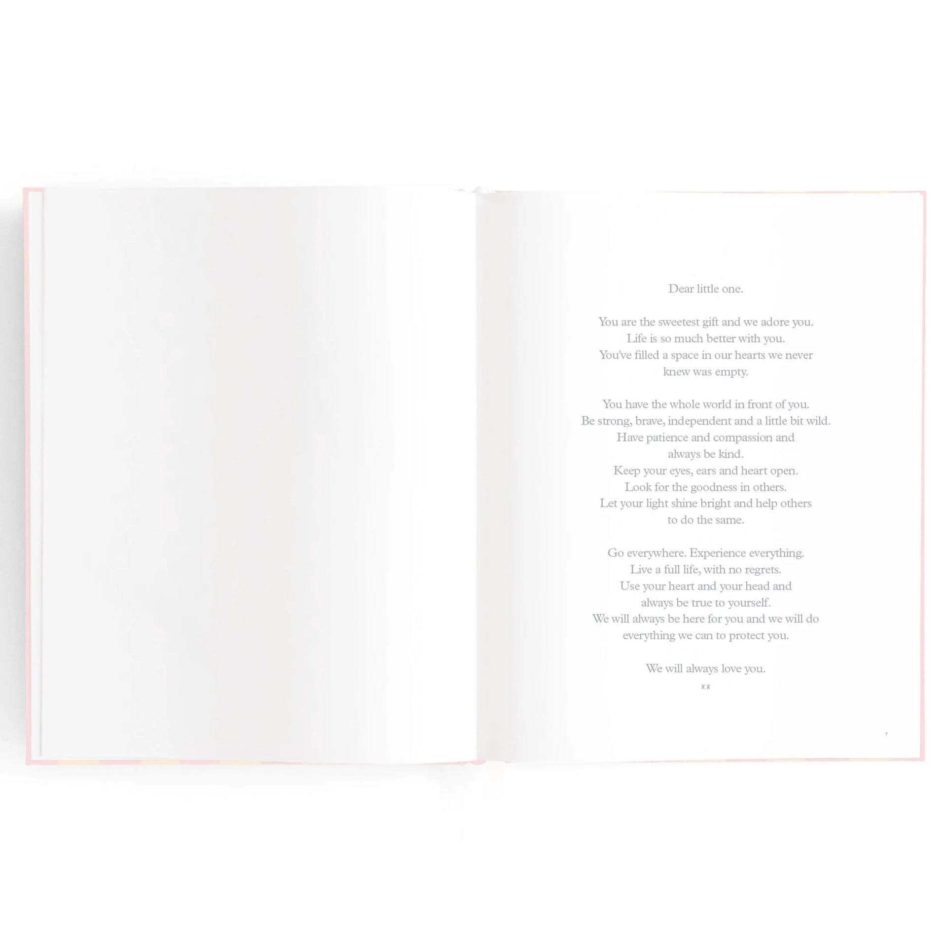 A beautiful keepsake for the whole family to enjoy. Includes: important milestones and firsts, family profiles, family tree and travel map, playgroup and daycare through to kindy and school years, time capsule, nicknames and celebrations, pets, friends, birthdays and more. 190 pages.