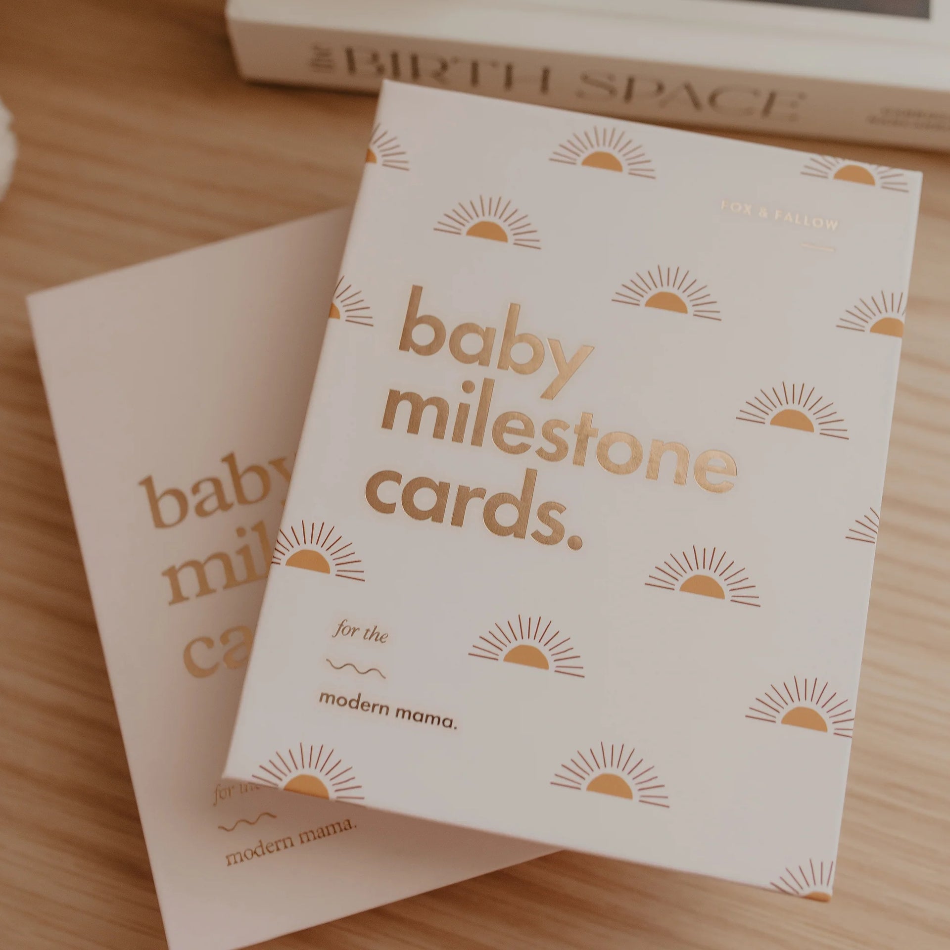 Celebrate those precious moments with Fox & Fallow’s Baby Milestone Cards for modern mamas and papas. Just snap a photo of your little one next to each card and share it with your family and friends.