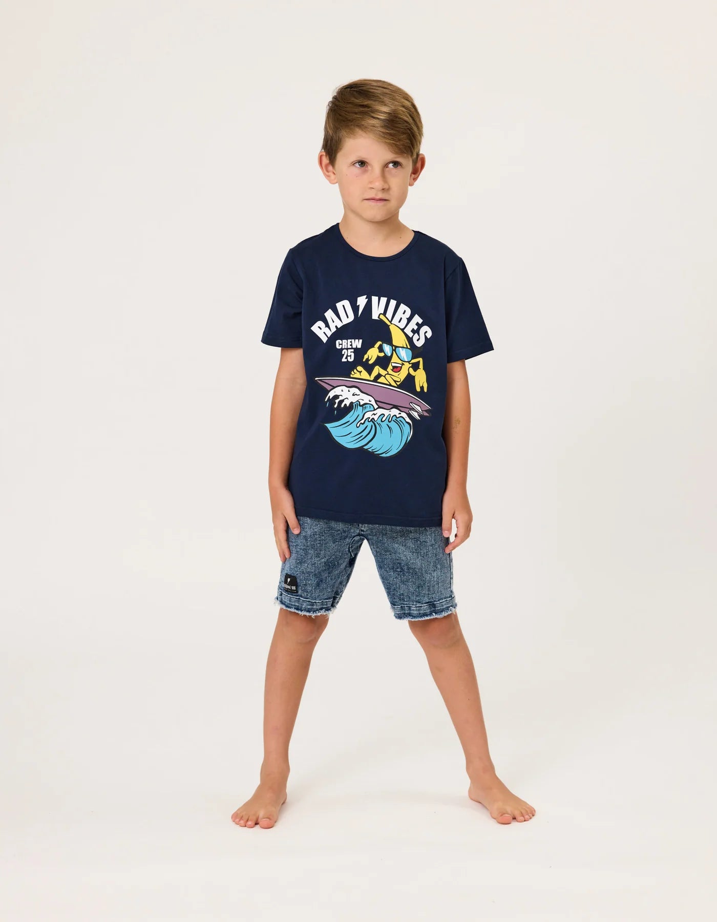 - Radicool Dude fabric label on front left thigh