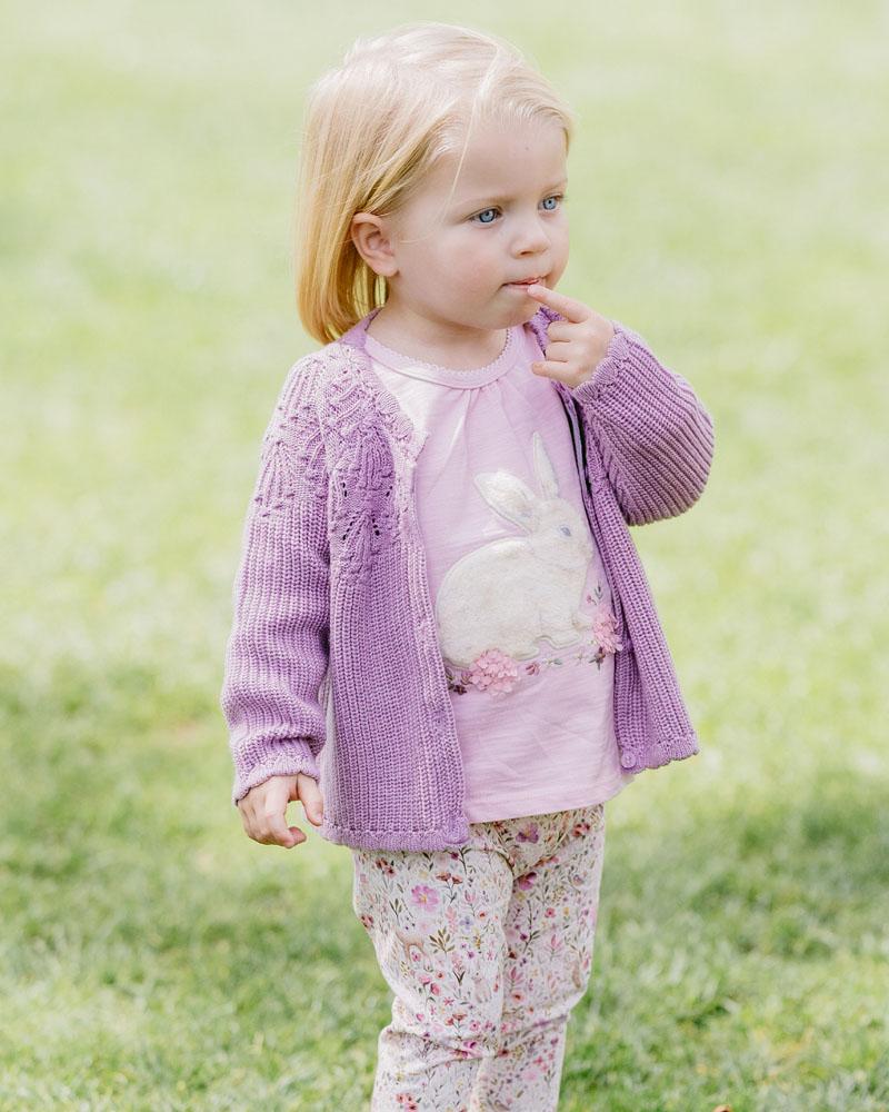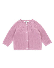 This fisherman's rib raglan long sleeve wool blend knit cardigan features a button front with a decorative design around the yoke, scalloped edges and is perfect to layer back with any outfit for extra warmth.