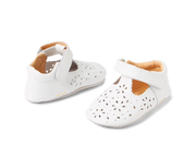 A floral-inspired broderie anglaise look decorates these classic T-bar shoes. Luxuriously soft, premium leather with precisely created petal cut-outs across the shoe upper, LACEY gently wraps around to suppport the heel and offers easy adjustability for a multitiude of ankle widths. A keep-sake by nature, they work for everyday prettiness or a special family occasion.