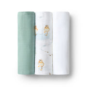 SNUGGLE HUNNY LARGE ORGANIC MUSLIN WRAPS 3 PACK-DUCK POND/SAGE/MILK