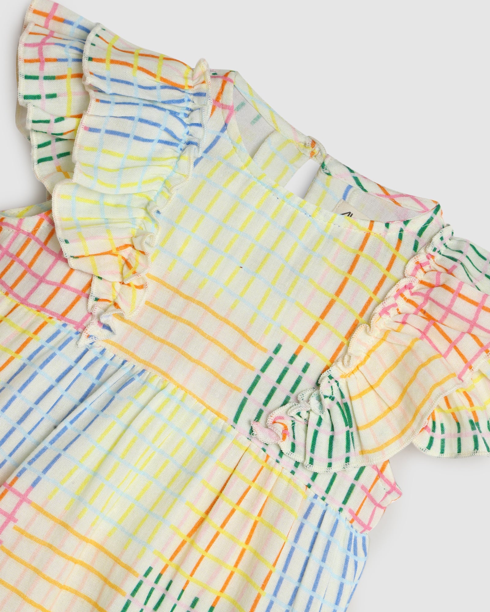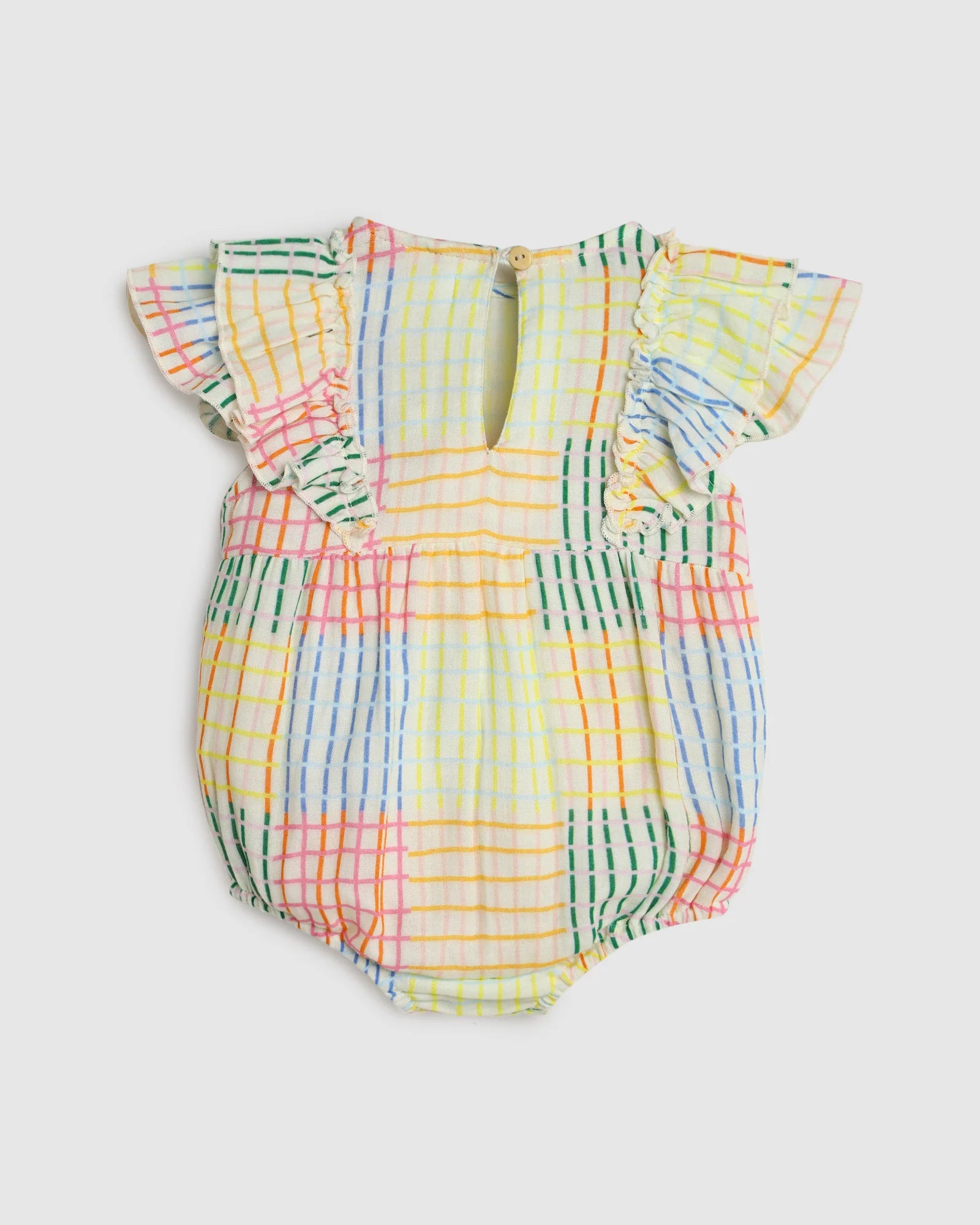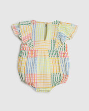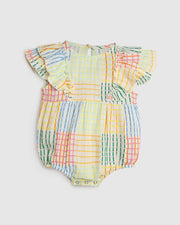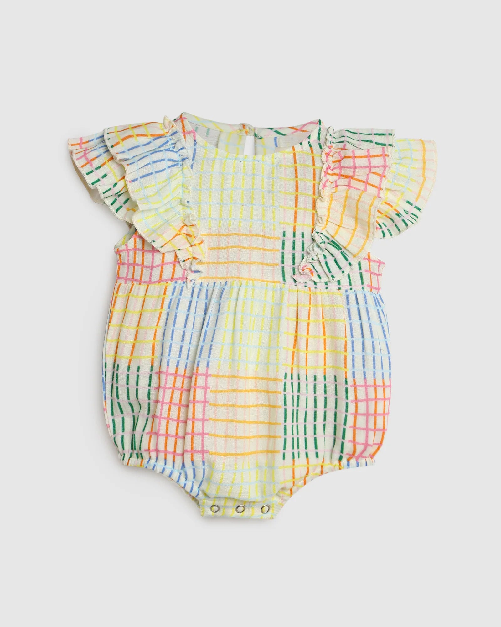 Make a splash of colour in your child's wardrobe with our Louisa Playsuit in Crazy Gingham featuring the most divine frilled sleeves adorned in a super crazy multi coloured gingham pattern.