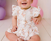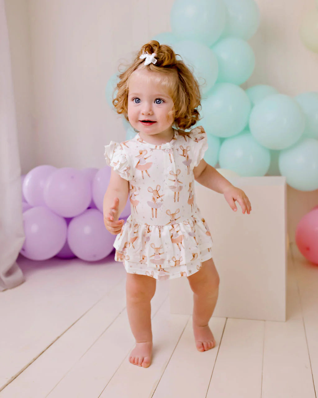Our Onesie Tutu Dress is the perfect mix of playful style and practicality. With layers of the softest tulle, it creates a beautiful tutu effect while still offering the comfort of a bodysuit. Crafted from our renowned blend of ultra-soft bamboo and organic cotton, all featuring captivating prints that add a touch of elegance to this showstopper dress