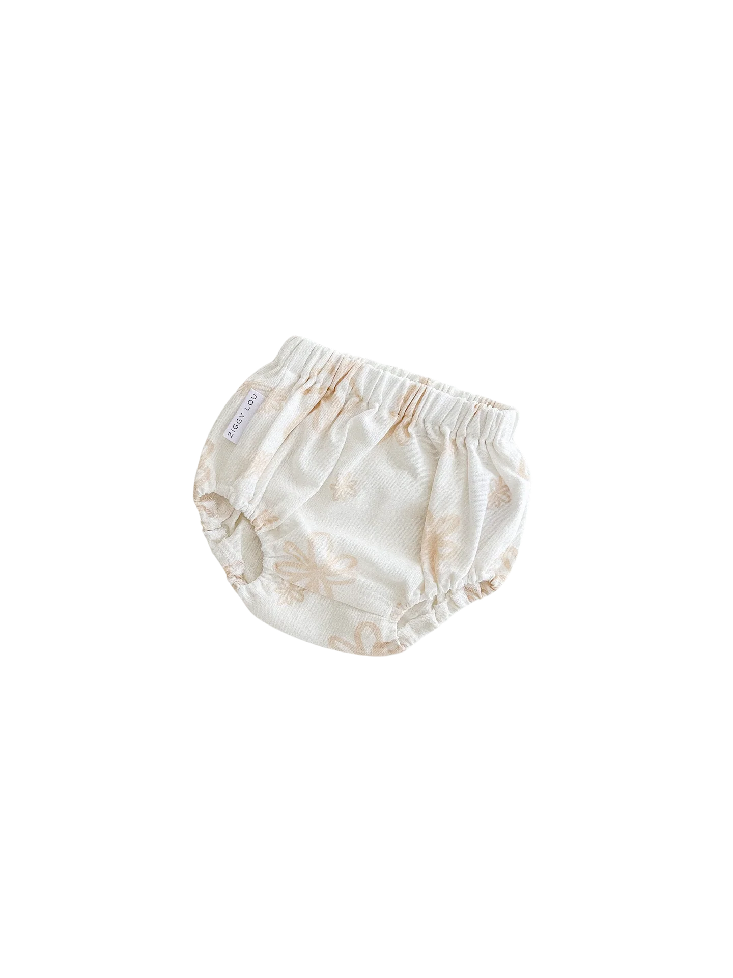 Linen blend bloomers with an elastic waist featuring our Gia print.