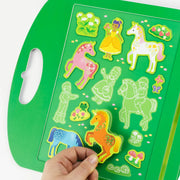 Unicorn Kingdom transports your little one to a magical rainbow world with an illustrated fold magnetic play scene. Meet unicorns of all shapes and colours, journey to the magic castle at the end of the rainbow or pick enchanted flowers. And if you are very lucky you might find the frog prince. Where is he hiding today? Create a new scene every time you play. Then when you are finished, pack up is super fun with the match the magnet pieces puzzle on the case! Job done.