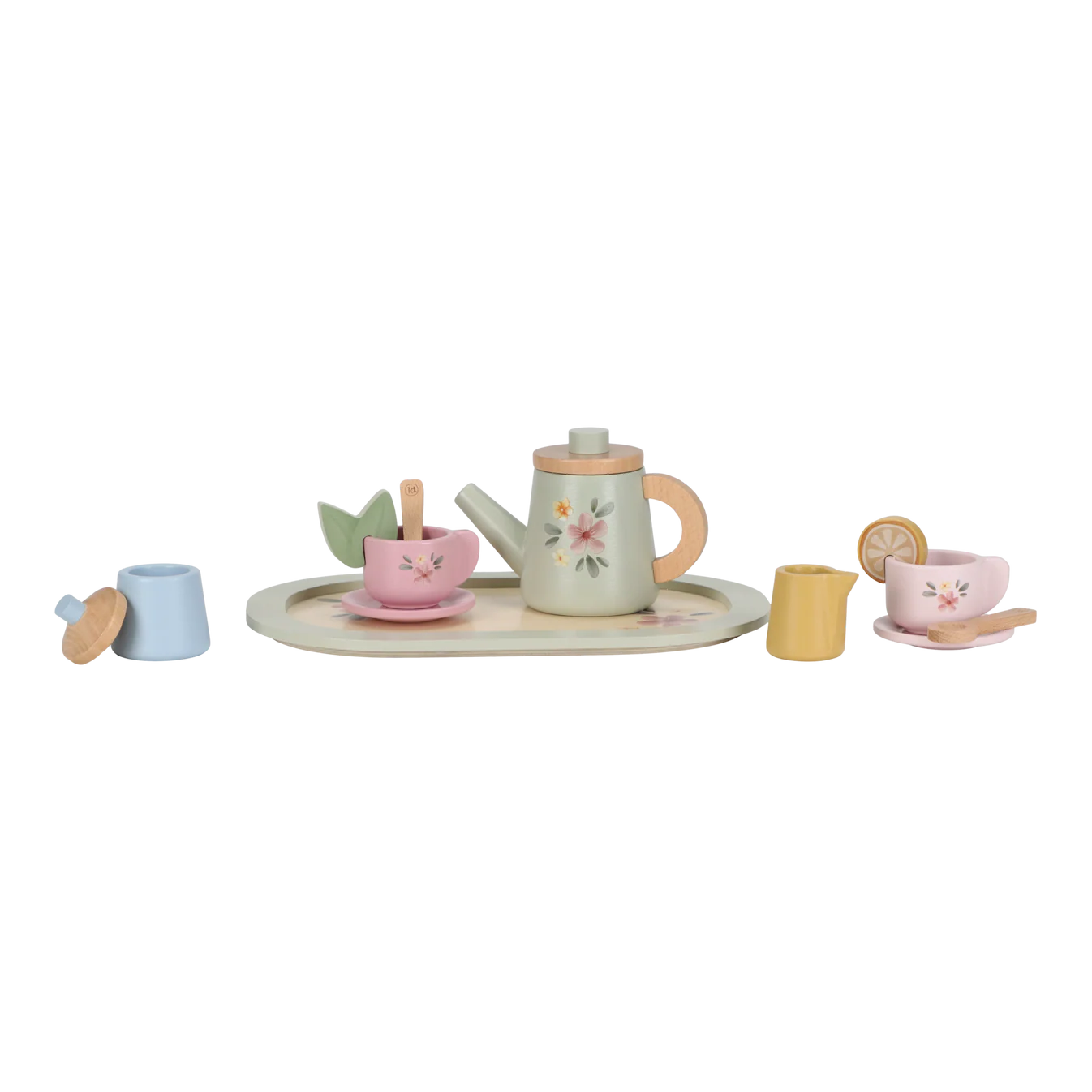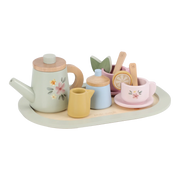 A cozy tea moment with friends, stuffed animals, or dolls! With this beautiful wooden tea set, your little one can pour delightful cups of tea. With milk or sugar, or perhaps a slice of lemon or a sprig of mint? The set includes everything needed to recreate a real high tea. Note: only suitable for imaginative tea parties, not for real food or water. Time to enjoy a wonderful cup of tea!