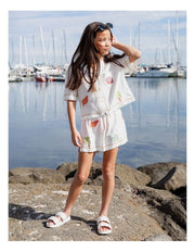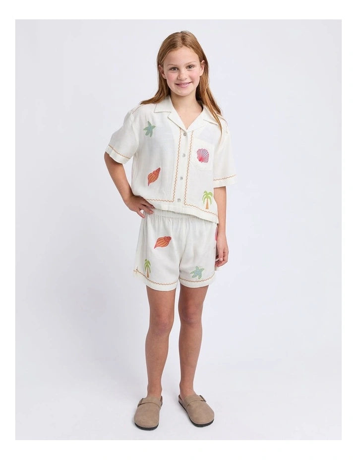 The Sunrays Short by Eve Girl is a must have this season. The style is in a classic relaxed fit with a fun and unique placement embroidery design. The short has an elastic waistband and self fabric frill with soft breathable fabric making for a comfortable and stylish addition to the wardrobe.